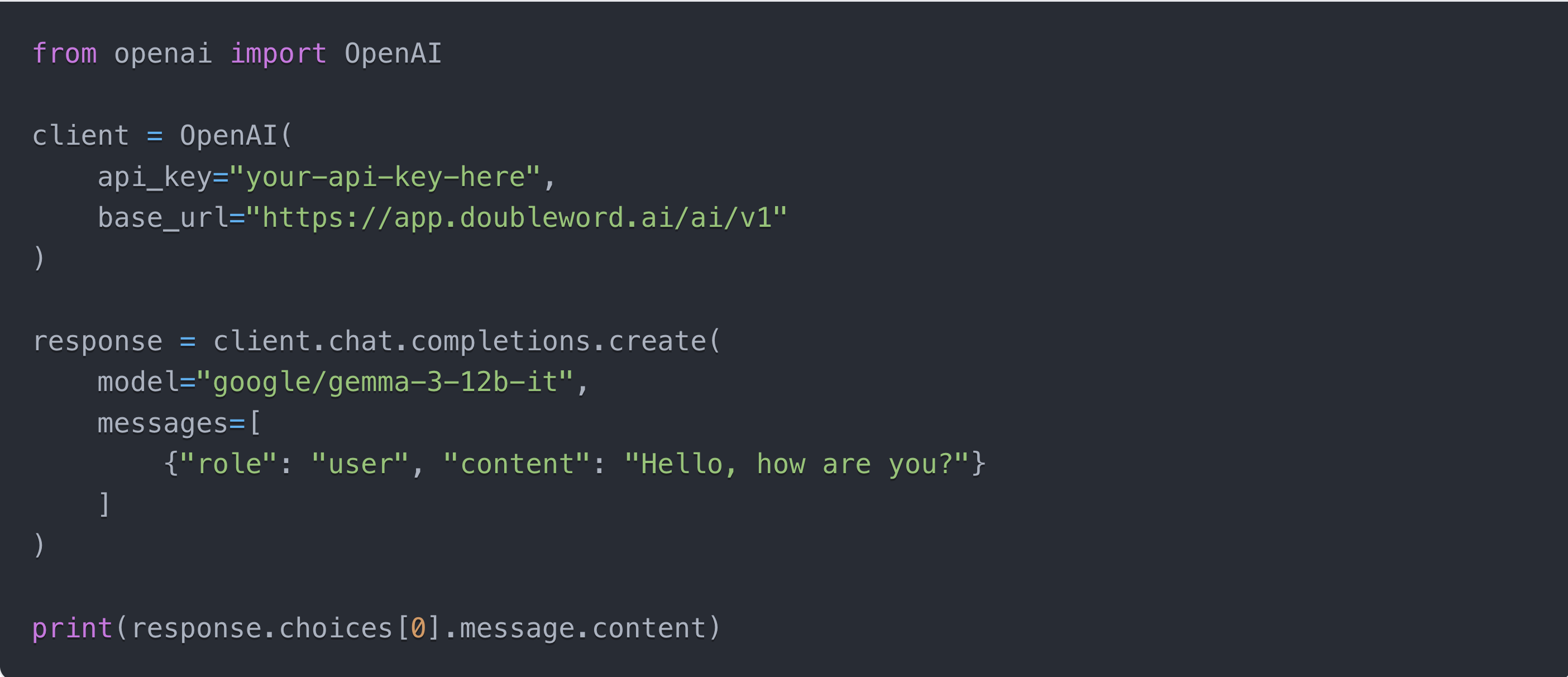OpenAI-compatible API example showing Control Layer usage with Python SDK
